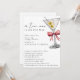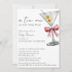 Um Tini a Caminho está Chegando Convite de Chás de Bebê Pink Martini Minimalista com Código QR - Um convite de chá de bebê simples, minimalista e aquarela para uma menina. Com caligrafia cursiva e fonte de bloco elegante. Uma ilustração aquarela de um martini sujo com duas azeitonas e um laço rosa coquete adorna o canto superior direito. Edite este modelo de convite de chá de bebê com os detalhes do seu evento. Torne fácil para os seus convidados acessarem sua lista de presentes adicionando o URL da sua lista de presentes ao modelo de Código QR no verso do convite. Todo o texto é editável. Também disponível como download digital instantâneo, uma maneira ecológica de enviar convites por texto, e-mail ou redes sociais.