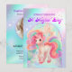 Um unicórnio fofo convida vocês para uma festa de conto de fadas com um pano de fundo de um castelo sonhador — a maneira perfeita de tornar seu dia especial inesquecível. (Trabalho de arte Gerado por AI)