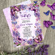 As botânicas e borboletas roxas, lilás e lavandas são a base para este único design de Chá de fraldas ao estilo de quadro "A Baby Butterfly Is On The Way". Também apresenta uma cor d'água multitons e um plano de fundo de splatter no verso. Design composto por Designs Holiday Hearts.