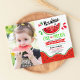 Celebre o seu primeiro aniversário com o nosso num Convite de Aniversário de Melon. Design apresenta frutas de melancia comidas meia em aquarela com texto "um em melão".