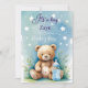 Bem-vinda a pequena estrela com um susto de poeira estelar e amor! Este convite para o chá de um bebê sonhador apresenta blues moles de aquarela, estrelas minúsculas, um ursinho de pelúcia fofinho, e detalhes da garrafa - tudo embrulhado num design mágico e animador. Perfeito para uma futura mãe que ama cores gentis e vibrações. Facilmente personalizado para ser seu!