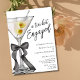 Um Tini Bit Envolveu Um Convite À Festa de noivado Dirty Martini - Um convite para festas de noivado bonito, único, elegante e moderno. Apresentando uma ilustração aquosa de um martini sujo com duas azeitonas verdes e um arco preto chic e coquetel sobre fundo branco limpo. Uma combinação de caligrafia de script e fonte elegante de bloco, este convite de festa de noivado chic expele sofisticação e elegância. Ponha o tom para um tempo inesquecível com amigos e familiares celebrando com o futuro Sr. e Sra. Edit este modelo de convite de festa de noivado com seus próprios detalhes de evento. Também disponível como download digital instantâneo, perfeito para envio por e-mail, texto ou mídia social.