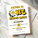 Um modelo de convite de festas retro margarida de bebê feliz, convites de festas de primeiro aniversario de menina, festa de margarida retrô, tema retro branco e amarelo, retro damas, convites de festas de aniversários hippie