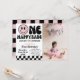 Um Convite Fotográfico para primeiro aniversario de Bebê Feliz.... Festa de primeiro aniversario Tema Rosa E Negro Trendy Cute One Happy Baby Girl Primeiro Convite De Aniversário.