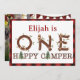 Celebre o seu primeiro aniversário de um aventureiro com este convite fotográfico "Um Camper Feliz". Apresentando um urso bonito, pinheiros, e espaço para uma foto favorita, é perfeito para uma festa rústica, ao ar livre ou com temas de floresta.