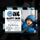 Um primeiro aniversario Feliz de Rapaz Foto Convite "Virar um nunca foi tão divertido! Envie a felicidade com nossos Convidados Felizes de Primeiro Aniversário "Celebre o primeiro marco do seu filho com estilo "Um Feliz Rapaz Primeiro Convite de Aniversário". Este charmoso convite, com suas cores vibrantes e design de tendências cativantes, garante uma primeira impressão inesquecível para a primeira festa de aniversário do seu filho. A mistura perfeita de diversão e sentimento, captura a alegria, inocência e exuberância de um menino de um ano entrando na excitante jornada da vida. O convite 'Um Cara Feliz' dá o tom para um evento vivo e cheio de risos celebrando esse marco significativo.