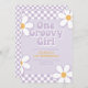 Convite de 1º aniversário inspirado em Uma Garota Muito Massa com fontes estilo anos 70 e margaridas e padrão xadrez.