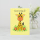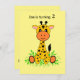 Este Convite apresenta uma girafa de bebê desenhada pela mão, digitalmente pré-encenada. A pequena girafa é amarela com pontos pretos e se senta na grama verde. Convite personalizado bonito para o aniversário de crianças (em qualquer idade), chá de fraldas e muito mais! Cor de fundo alterável.