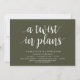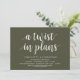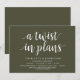 Mudar o cartão de data. Este é o convite para a festa de casamento remarcado (adiado / adiamento) cartão (Uma mudança nos planos), no design moderno minimalista simples e limpo com tema de verde oliva verde.