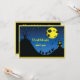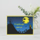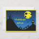 Esta imagem apresenta o halloween. Uma casa é iluminada por uma lua de cheio. Os morcegos estão voando pela casa. A bruxa está voando sobre sua vassoura e os monstros estão correndo em direção à casa para a festa. O cemitério e a árvore morto estão na colina, olhando a casa. Foi adicionada uma borda amarela. O verso do convite pode ser personalizado com todas as suas informações.