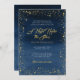 Esta noite moderna sob o convite do baile de formatura das Estrelas é uma escolha excelente para a sua dança formal. Perfeito para um baile de formatura temático de estrelas, tema de baile de formatura noturno estrelado, festa de empresa ou qualquer dança formal de tema estelar. Este convite elegante apresenta uma borda falsa de estrela dourada sobre um fundo de cor azul-d-água marinho. Designs são ilustrações/gráficos impressos planos - NÃO FOIL DE OURO REAL.