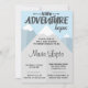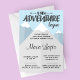Nossa Nova Aventura Começa o Convite para Chás de fraldas de inverno é perfeita para seu próximo chá de fraldas. Este convite apresenta montanhas bidimensionais impressionantes com neve de inverno no topo, topografia divertida e detalhes de sua festa listados em formato moderno.