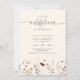 Explore o encanto de nossa "Pequena flor selvagem" Convite para Chá de fraldas Floral de Flor Selvagem - uma fusão de chorona e beleza natural. Feito num pano de fundo de estoque luxuoso de creme leve, este convite ostenta uma deliciosa coroa enfeitada com flores silvestres delicadas e charmosas abelhas aquáticas, criando uma atmosfera lúdica e cativante para sua celebração. Em um guião alegre, a frase "Um Pequeno Vestido" dança através do convite, capturando a essência livre e espirituosa do seu pacote de alegria que chegará em breve. A fusão de elementos vivos e de matizes moles serve como um prelúdio alegre para a alarmante ocasião. Rode a placa para revelar uma coroa correspondente na parte traseira, fazendo eco da design inspirada no boho do convite. Aqui você encontrará detalhes essenciais, incluindo as informações do registro do chá de fraldas, cuidadosamente apresentadas juntamente com um código QR para acesso sem esforço. Este convite não é apenas um convite - é um símbolo da jornada selvagem e maravilhosa que está por vir, convidando os entes queridos a compartilhar na antecipação da flor doce que é a sua pequena.