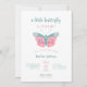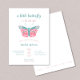 Uma pequena borboleta está a caminho que o convite para chás de fraldas de meninas apresenta uma borboleta branca com tipografia rosa e lacrimogênea. O texto "é uma menina" aparece no verso.