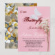 Cartão modelo de convite para chá de fraldas de doce, com uma borboleta branca e flores de fundo rosa. O texto no topo diz "Uma borboleta pequena está a caminho". Personalize este produto adicionando as informações da sua parte.