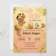 um convite de chá de fraldas para a garota, uma fofa americana. Laranjas vibrantes com um bebê bonitinho vestido com roupas de temas laranja.