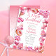 Sabemos que não pode esperar para ver sua "Querida Pequena Querida" e esta design de Bebê Namorado celebra você e sua pequena em delícia! Uma deliciosa trama de padaria e um quadro cor-de-rosa doce rodeia os detalhes do seu chá de uma forma tão elegante. A parte de trás apresenta uma espiral de algodão doce para cima desta design mais doce do que doce.