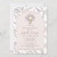Convite para Chá de fraldas de outono e Ação de Graças para uma menina. Possui um lindo peru-menina desenhado à mão e penas adoráveis de gingham contra um fundo branco na frente com detalhes personalizáveis de festas. O dorso apresenta um padrão de penas gingham em um lilás escuro contrastante e elegante.