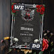 Uma simbiose gótica, cabelos elegantes e crânios. Impressionante quadro escuro em estilo gótico com um coração prateado articamente desenhado cercado por asas majestosas. As joias vermelhas adoram o coração. Dois crânios decoram o quadro. Esses elementos somam uma profundidade escura, mas fascinante, à imagem geral e reforçam o caráter gótico do design.