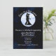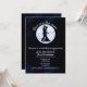 Uma vez em lua azul o tema convite para festas de noivado feito em azul escuro com estrelas cintilantes, sobre o fundo. Os gráficos de uma noiva e uma silhueta nobre ficam em frente a uma bonito lua azul. Personalize todos os campos de texto para se adequarem ao seu evento.