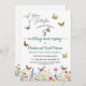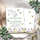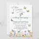 Um convite de aniversário de casamento elegante com verde e flores silvestres coloridas e borboletas que você pode personalizar adicionando seus detalhes.
