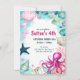 Make her birthday magical with this adorable under the sea mermaid birthday invitation! Featuring colorful ocean elements like seashells, starfish, jellyfish, and a playful octopus, this design is perfect for little girls who love mermaids, ocean animals, and beachy themes.
