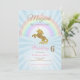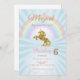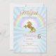 Os convites de aniversário do Unicórn têm um unicórnio brilhante ouro sobre eles. O fundo é azul e tem um arco-íris! Estes convites dizem: "Um dia mágico está a caminho!"