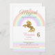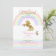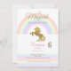 Estes convites unicórnios têm um arco-íris e um unicórnio ouro nele. Dizem: "Um dia Mágico está a caminho!"