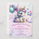Convites Unicorn 7 Birthday Convide Rapariga Roxo e Dourada