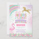 Convite de Aniversário do Unicorn e Flamingo. Design © PIXELPERFECTIONPARTYLTD