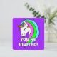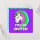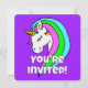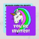 Esta design de festa divertida apresenta uma cor de fundo brilhante e um feliz unicórnio arco-íris. Personalize com seu próprio nome, idade e informações! Projetado no belo estado de Washington, EUA, por um artista independente.
