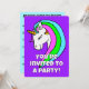 Esta design de festa divertida apresenta uma cor de fundo brilhante e um feliz unicórnio arco-íris. Personalize com seu próprio nome, idade e informações! Projetado no belo estado de Washington, EUA, por um artista independente.
