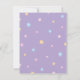 Este convite tem um unicórnio branco giro com um homem cor-de-rosa a aparecer na parte inferior do convite vestindo um chapéu de bolinhas. Stars and sunburst adiciona à vibração comemorativa. Paleta de cores, em grande parte rosa e roxa, com toques de azul, amarelo e branco. Personalize com detalhes de festa de aniversário para a aniversariante!