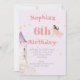 Uma princesa e um Unicórnio temem um convite pessoal de aniversário que apresenta uma princesa com cabelo escuro em um unicron. Altere facilmente as informações para a sua design de festa de aniversário personalizada.