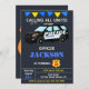 Concurso de aniversário para polícia convite para crachá de polícia. Convide seus amigos para a festa de policiais e ladrões com este brilhante e colorido convite da polícia! Este convite para o tema de carro da polícia preto e azul inclui a unidade de carro da polícia, o xerife crachá e uma garland no topo. Simplesmente edite este menu de personalização fácil de usar modelo para torná-lo especial.