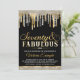 Um fabuloso convite de aniversário 70 preto e dourado com diamante elegante e gotas de ouro sobre fundo preto. Este convite de aniversário de 70 de diamante preto e dourado é facilmente personalizado para o seu evento simplesmente adicionando os seus detalhes no estilo de letra, cor e texto da sua escolha. Você também pode mudar a cor de fundo nos lados frontal e traseiro.
