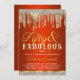 Mulheres vermelhas e douradas, fabulosas cinquenta convites de aniversário com diamante elegante e dourado pingando em um bonito fundo vermelho. Esta mulher vermelha e o convite de aniversário de diamante dourado 50º são facilmente personalizados para o seu evento, simplesmente adicionando os seus detalhes no estilo de letra, cor e redação da sua escolha.