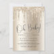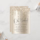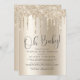 Celebre a futura mãe à distância com um chá de fraldas virtual online. Este convite de chá de fraldas elegante e glamouroso, neutro em relação ao gênero, apresenta um brilho dourado a gotejar de cima, "Oh Baby!" em um roteiro de na moda e um fundo de gradiente de ouro de champanhe. Você pode personalizar facilmente com os detalhes do chá on-line, incluindo um link de acesso on-line, informações do registro, onde enviar cartões e presentes ou a opção de abrir online e enviar posteriormente, e onde obter mais informações.
