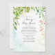 Trendy dirige através de bridal ou convite de chá de fraldas com uma moldura geométrica dourada e lavagem com cor d'água verde sage inversa.