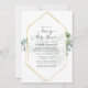 A floresta selvagem tensa de eucalipto herbário é conduzida através de convite à noiva ou ao chá de fraldas com estrutura geométrica dourada.