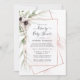 Trendy conduz através de convite de noiva ou chá de fraldas com flores anêmonas e folhas de eucalipto em uma estrutura geométrica de cobre - rosa de ouro.