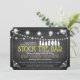 Adicione os seus próprios detalhes a estas luzes brilhantes e giratórias do quadro e cordas que empilham os convites de festas do bar.