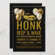 Design apresenta um carro brilhante dourado, balões e um confete dourado. Torne-o seu próprio texto (e fotografias pessoais). Para acessar ferramentas avançadas de edição, vá para "Personalizar", role para baixo e pressione o link "clicar para personalizar mais".
