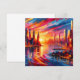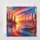 Um pôr do sol vibrante sobre uma paisagem urbana frágil, com matizes cor de laranja quente e cor-de-rosa refletindo arranha-céus de vidro.