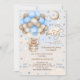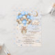 Exclusivamente projetado para o convite de churrasco de bebê menino urso de pelúcia da Zazzle com balões azuis na lua