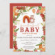 Podemos esperar! Um chá de fraldas de ursinho bonitinho que apresenta cor de tons de terra, em vermelho, verde, laranja e marrom com arco-íris, ursinho fofo e balão de laranja, com a aquarela floral do outono e uma tipografia moderna do roteiro.