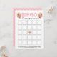 Ursinho de Chá de fraldas de Garota Balão Rosa, Ursinho de Bingo, cor-de-rosa, CHÁ DE FRALDAS "Nós podemos esperar", cartão de bingo com balão de ar quente e quadrados brancos. Uma maneira divertida de interagir com os convidados do chá enquanto a futura mãe abre os presentes no chá de fraldas. Clique no botão "Personalizar!" para alterar o tamanho do texto, a cor do texto, o estilo da fonte e muito mais!