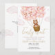 Convite de chá de bebê para menina cor-de-rosa com tema de ursinho fofo "mal podemos esperar" e seu código QR no verso. Criado por Thisisnotme©