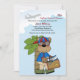 Um design encantador com um ursinho de pelúcia pronto para a viagem. Ele segura sua mala, câmera e cartão de embarque.