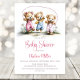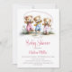 Celebre a chegada iminente do seu bebê convidando amigos e familiares para a sua festa de chás com este convite com três adoráveis ursos de pelúcia brincando de pula corda. O texto personalizável permite que você adicione facilmente seu nome, data e horário da celebração e as informações de confirmação de presença. Uma variedade de tipos de papel e estilos de canto estão disponíveis para seus convites únicos, além da opção de baixar se você preferir um formato digital.